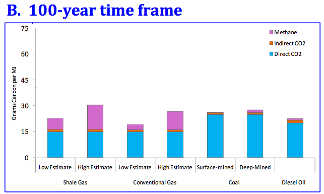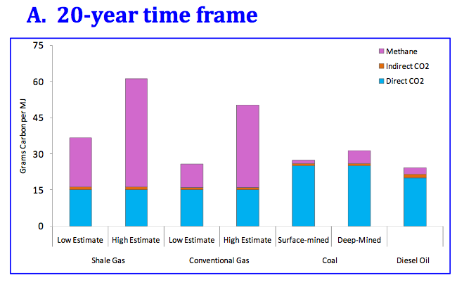 Graphs: Howarth, R., Santoro, R., and Ingraffea, T., Methane and the greenhouse gas footprint of natural gas from shale formations, Climatic Change Letters, in press, 2011.